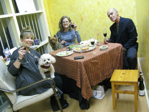 | Diana, Julie, Jeffrey and excellent bottle of wine far right on floor |